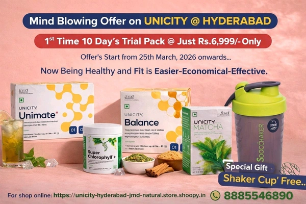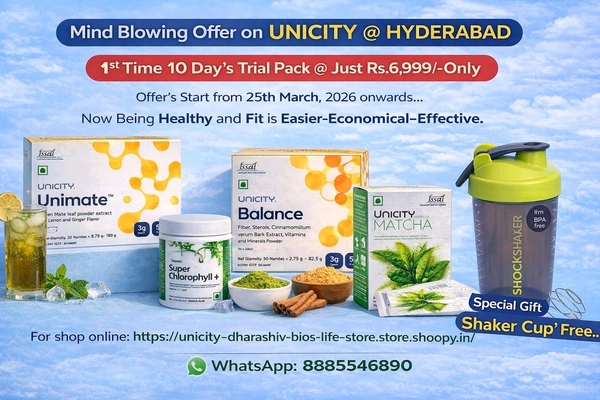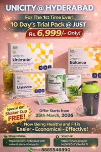 Welcome to Unicity Hyderabad Health Store, your trusted destination for health and wellness solutions. Dive into a healthier lifestyle with the UNICITY ALL PRODUCTS 10 DAY'S TRIAL PACK, a specially curated selection designed to help you kickstart your journey toward better health. Perfect for anyone seeking a convenient way to explore high-quality wellness products, this trial pack is your first step to unlocking a healthier, more vibrant you.