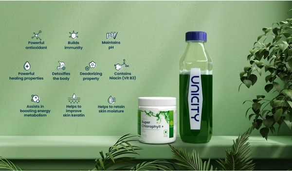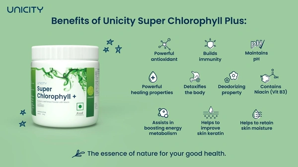 Unicity Super Chlorophyll Plus is a plant-based product containing the potent form of one of nature's most powerful nutrients—chlorophyll. It naturally helps to keep your body at the peak of good health, prepares your body to be clear of toxins, unaffected by pollution and stress, and to defend against the damage from free radicals throughout the day.